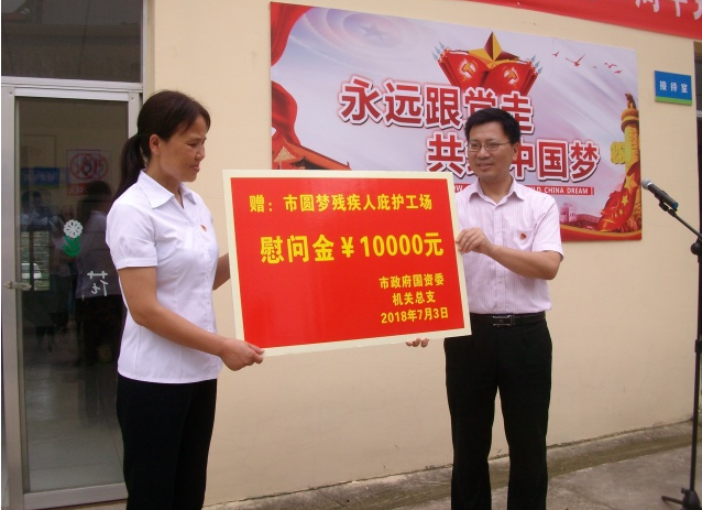 7月3日,為紀(jì)念中國共產(chǎn)黨建黨97周年,市政府國資委機(jī)關(guān)黨總支、市交投集團(tuán)機(jī)關(guān)黨支部、市公交集團(tuán)機(jī)關(guān)黨支部以“念黨恩、獻(xiàn)愛心”為主題,組織黨員們一同走進(jìn)市圓夢殘疾人庇護(hù)工場,開展7月份黨員主題活動日活動。