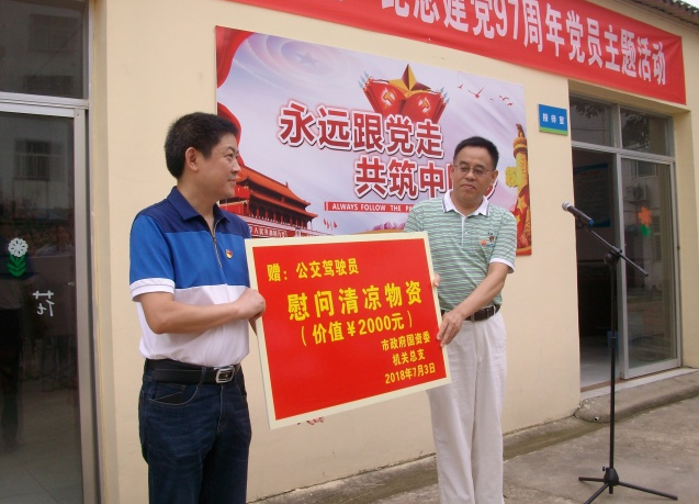 當(dāng)天的活動中,市政府國資委機(jī)關(guān)總支為市圓夢殘疾人庇護(hù)工場捐贈了慰問金,并為一線公交駕駛員送去了防暑降溫物資。