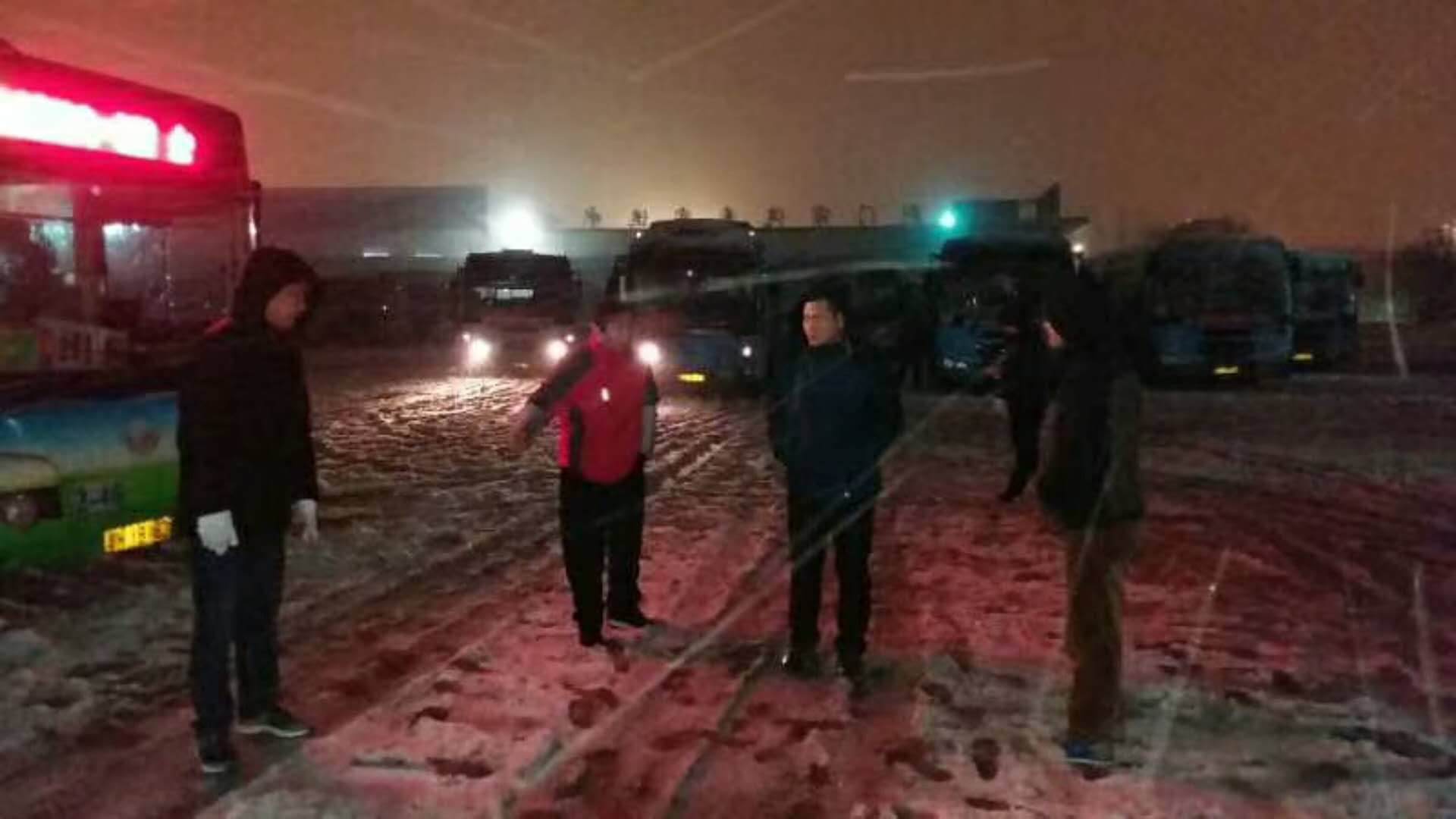 1月3日下午,荊門(mén)迎來(lái)了新年里第一場(chǎng)大雪,荊門(mén)氣象已經(jīng)發(fā)布暴雪警報(bào),收到暴雪警報(bào)后,荊門(mén)市公共交通集團(tuán)有限公司立即成立了150人的暴雪應(yīng)急隊(duì),早早準(zhǔn)備了防凍防滑物資:鹽2噸,防滑鏈400余條,鐵鍬60把,救援車(chē)10臺(tái);公司領(lǐng)導(dǎo)全部到一線(xiàn)坐鎮(zhèn)指揮,管理人員向近千名駕駛員傳授了雨雪天安全駕駛知識(shí);晚十點(diǎn),巡查人員開(kāi)始查看危險(xiǎn)路段結(jié)冰情況,確定凌晨裝防滑鏈和撒鹽人員;凌晨4點(diǎn)應(yīng)急人員和駕駛員全部到位,按探路組、裝防滑鏈組、撒鹽組、監(jiān)管組分工負(fù)責(zé),并對(duì)出車(chē)駕駛員逐車(chē)逐人安全叮囑!以求能確保所有車(chē)輛都能一路平安!