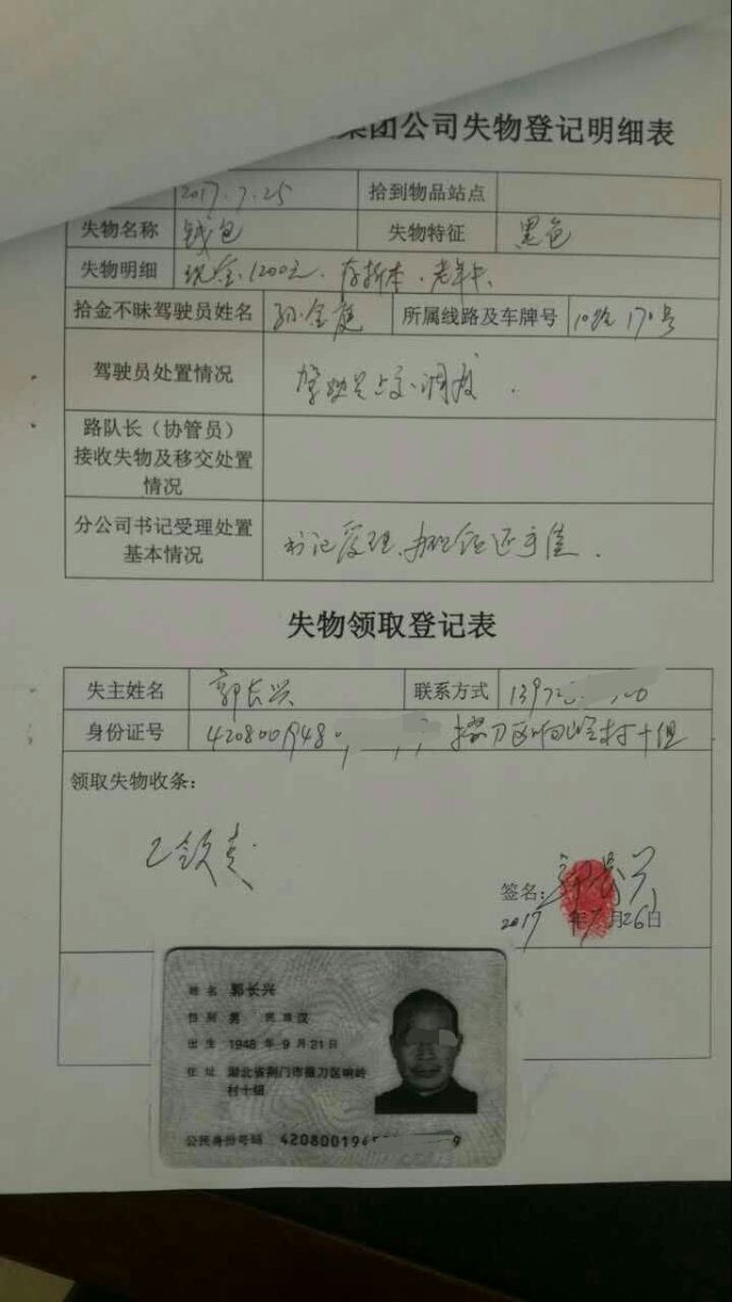 12時(shí),工作人員為郭大爺辦理了領(lǐng)還手續(xù)。郭大爺領(lǐng)到失而復(fù)得的錢(qián)包后,詳細(xì)詢(xún)問(wèn)了孫師傅的情況,并激動(dòng)的說(shuō)要寫(xiě)信給媒體感謝孫師傅的義舉。