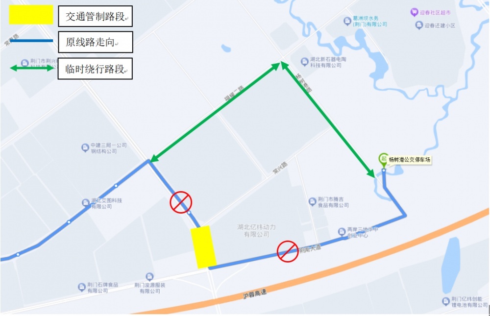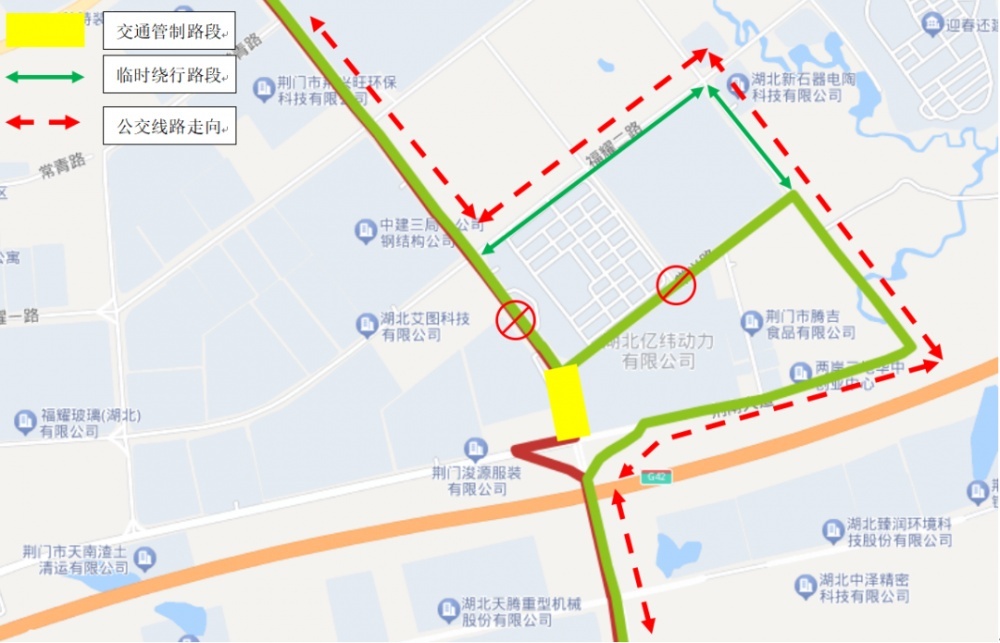 根據(jù)荊門市2023年中心城區(qū)城市建設(shè)計劃,市政府投資工程建設(shè)管理中心擬在龍井大道進行億緯橋(龍井大道上跨荊南大道立交)改造工程,2023年6月26日—2024年2月3日期間龍井大道常興路至荊南大道施工路段實行封閉交通管制。為保證封閉施工期間市民正常公交出行,荊門城區(qū)28路、59路線路走向需臨時調(diào)整,具體調(diào)整如下: